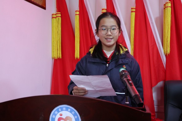 获奖学生代表黄飞燕发言,她说:“通过这次活动,我深刻体会到了书法的魅力,也更加明白了慈善的意义。在今后的学习生活中,我将积极参与慈善活动,传递更多爱心。”